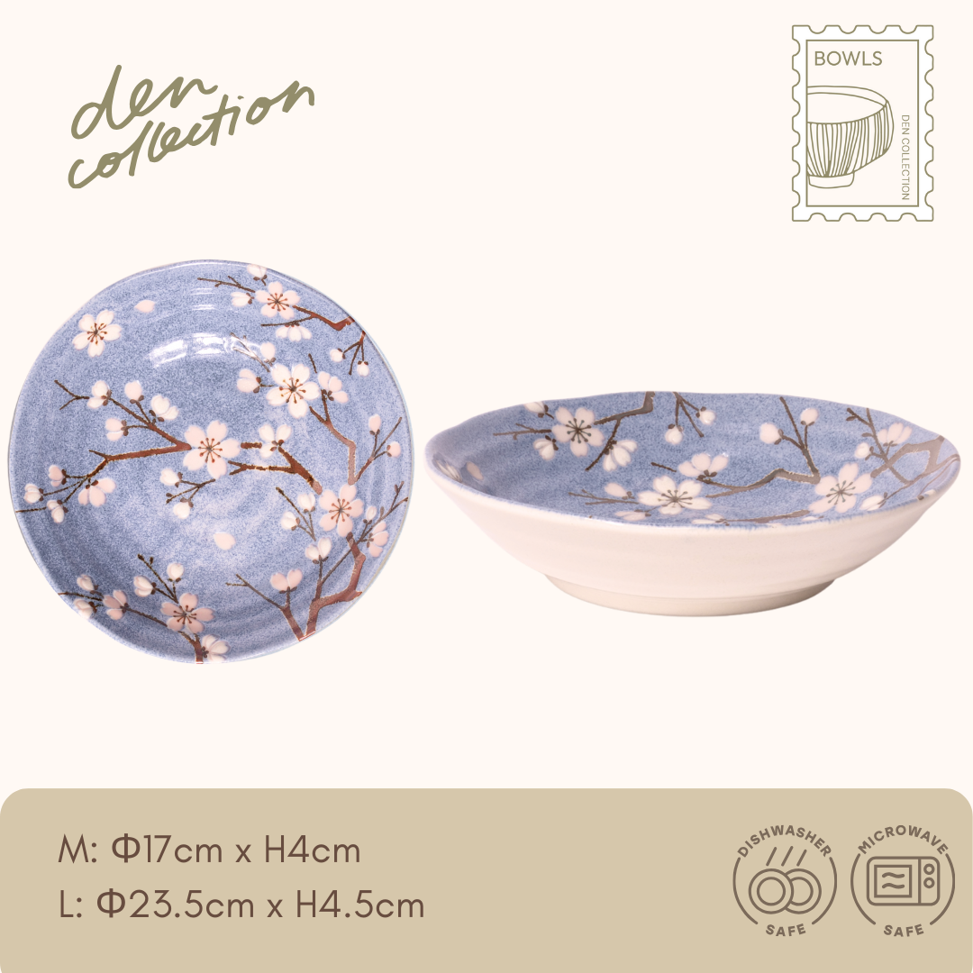 Soft blue tones evoke an open, peaceful sky, while delicate sakura branches spread gently across the plate.