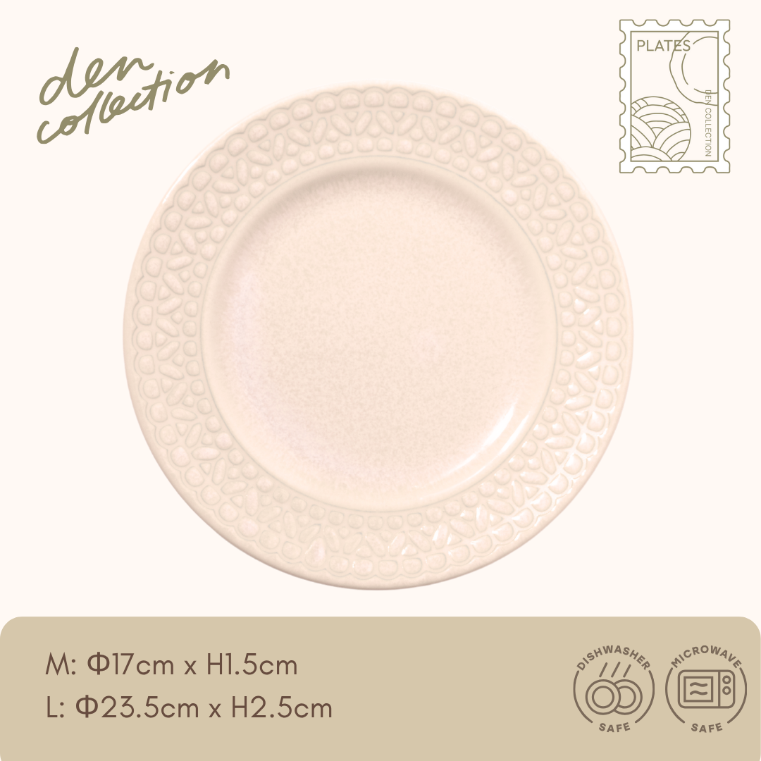 The Lace Rhythm Plate – Ivory features an elegant lace-patterned rim with a soft, warm ivory glaze.