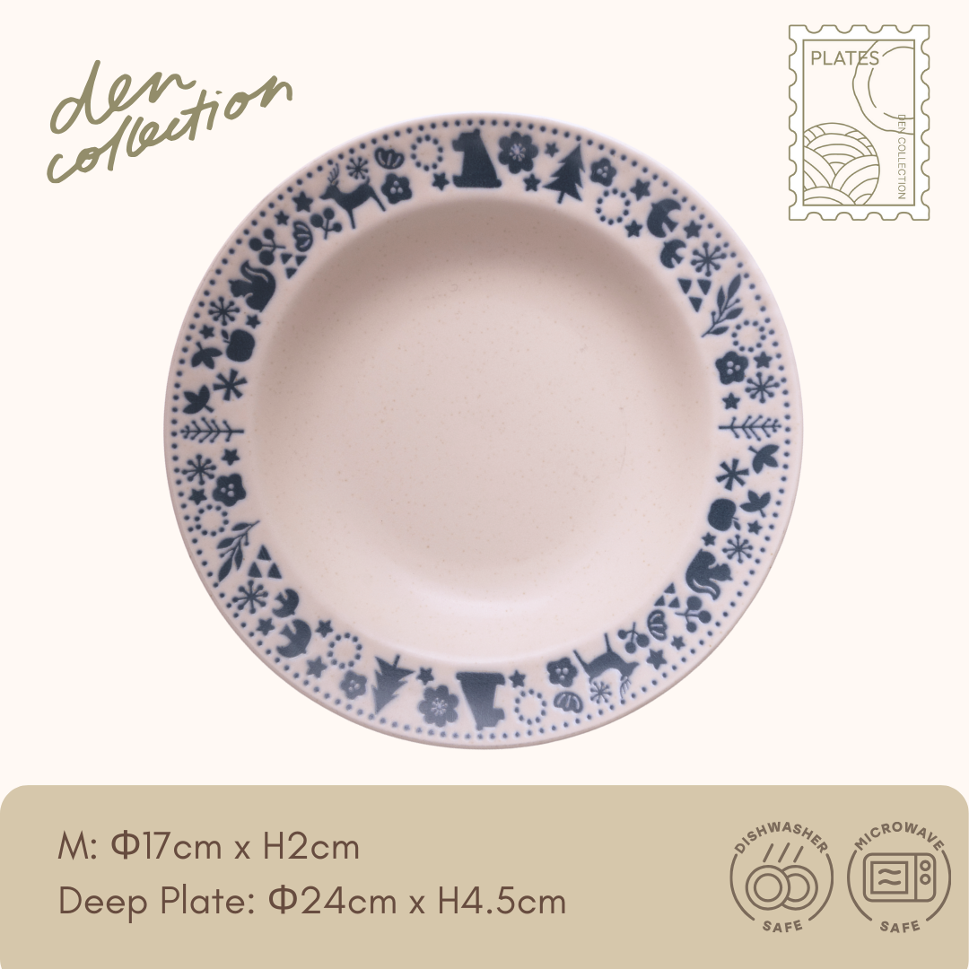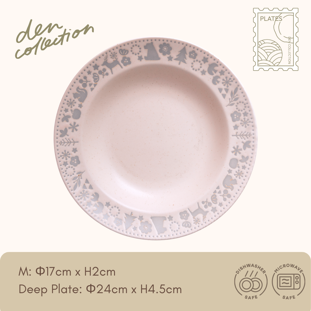 森に暮らす動物や草花を縁にあしらった、やさしい雰囲気のプレートです。