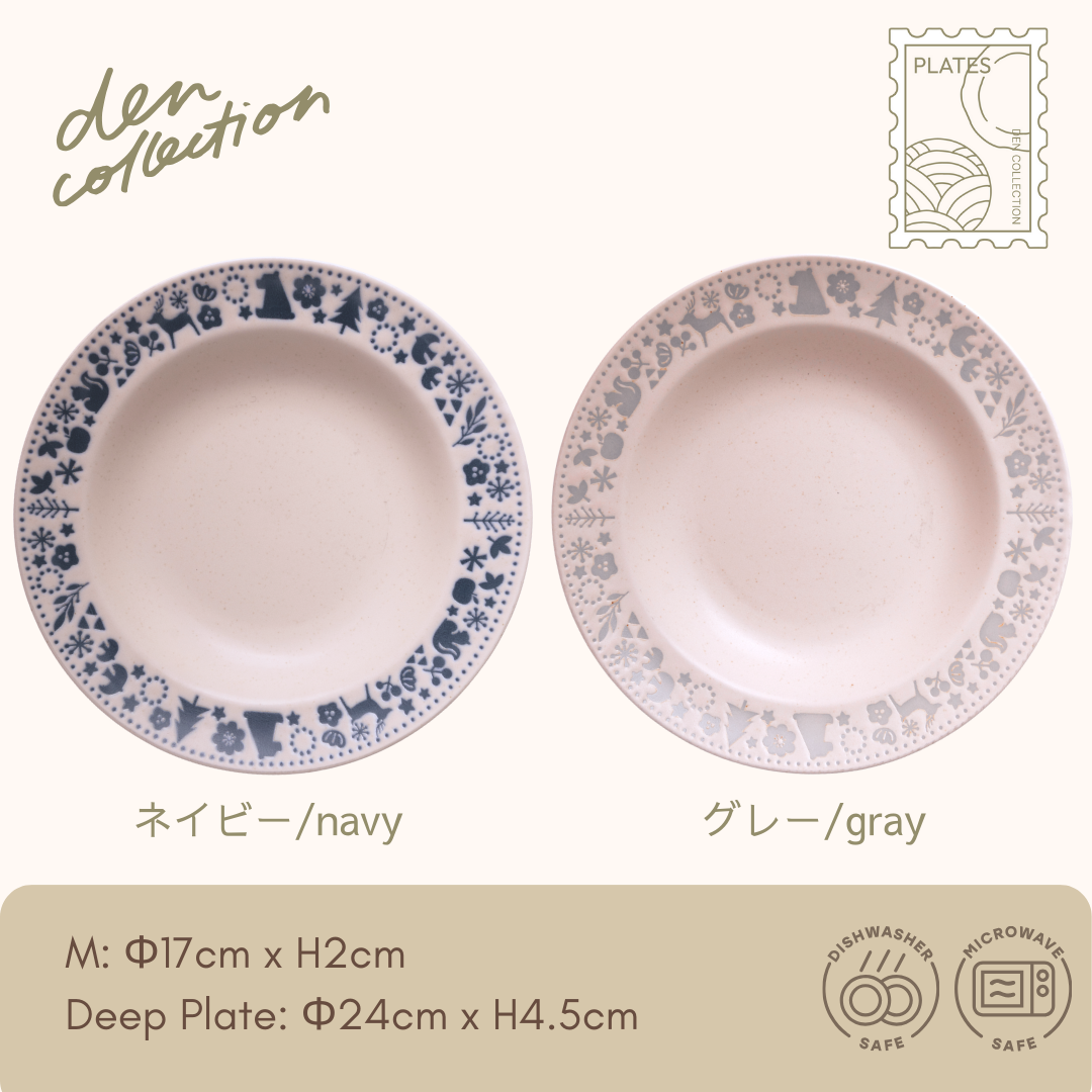 落ち着いたネイビーとグレーの2色展開で、料理を引き立てながら食卓に物語性を添えます。