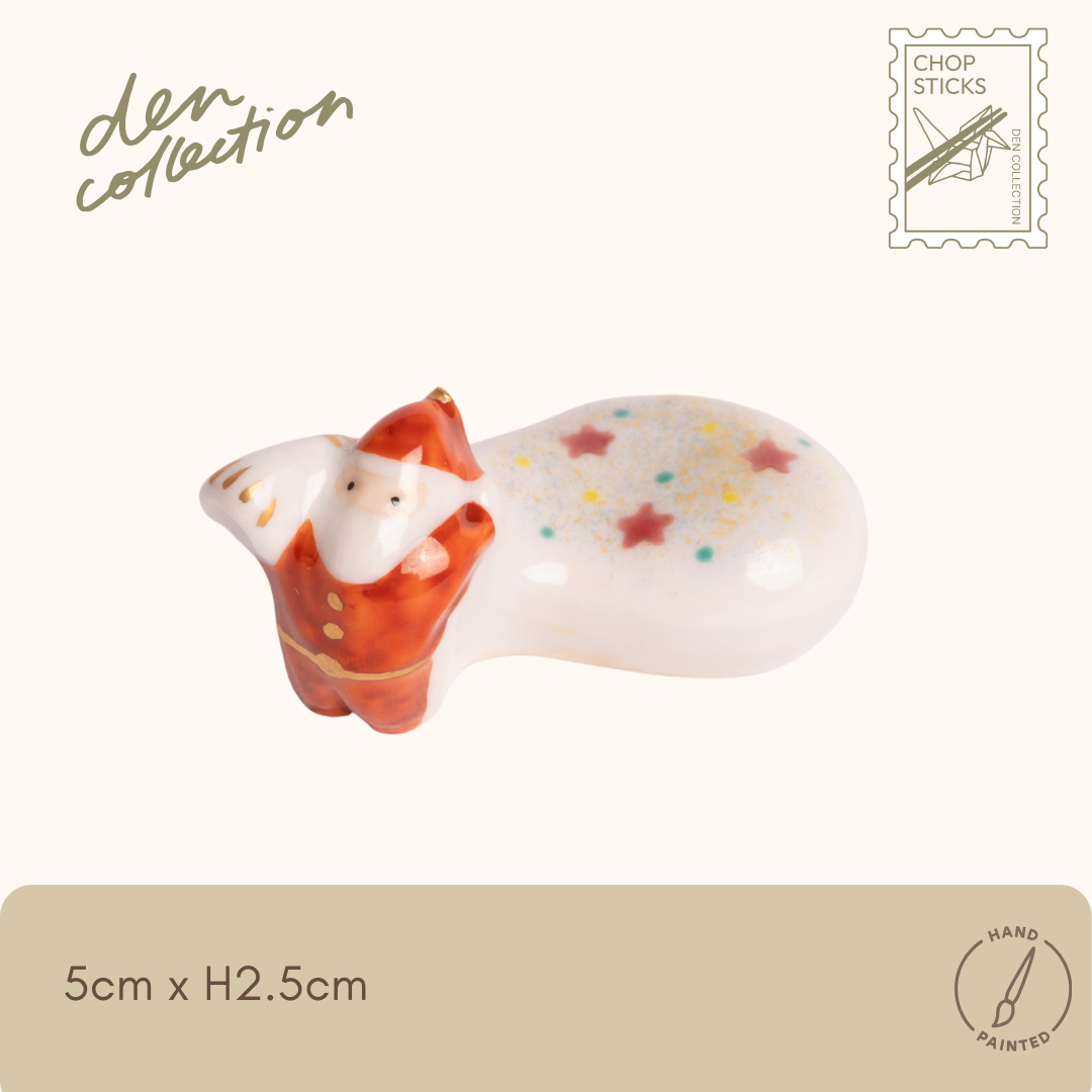 ころんと愛らしいサンタさんが主役の、清水焼 箸置きです。
