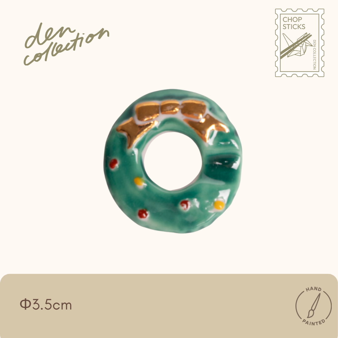 クリスマスリースをモチーフにした、清水焼ならではの温もりを感じる箸置きです。
