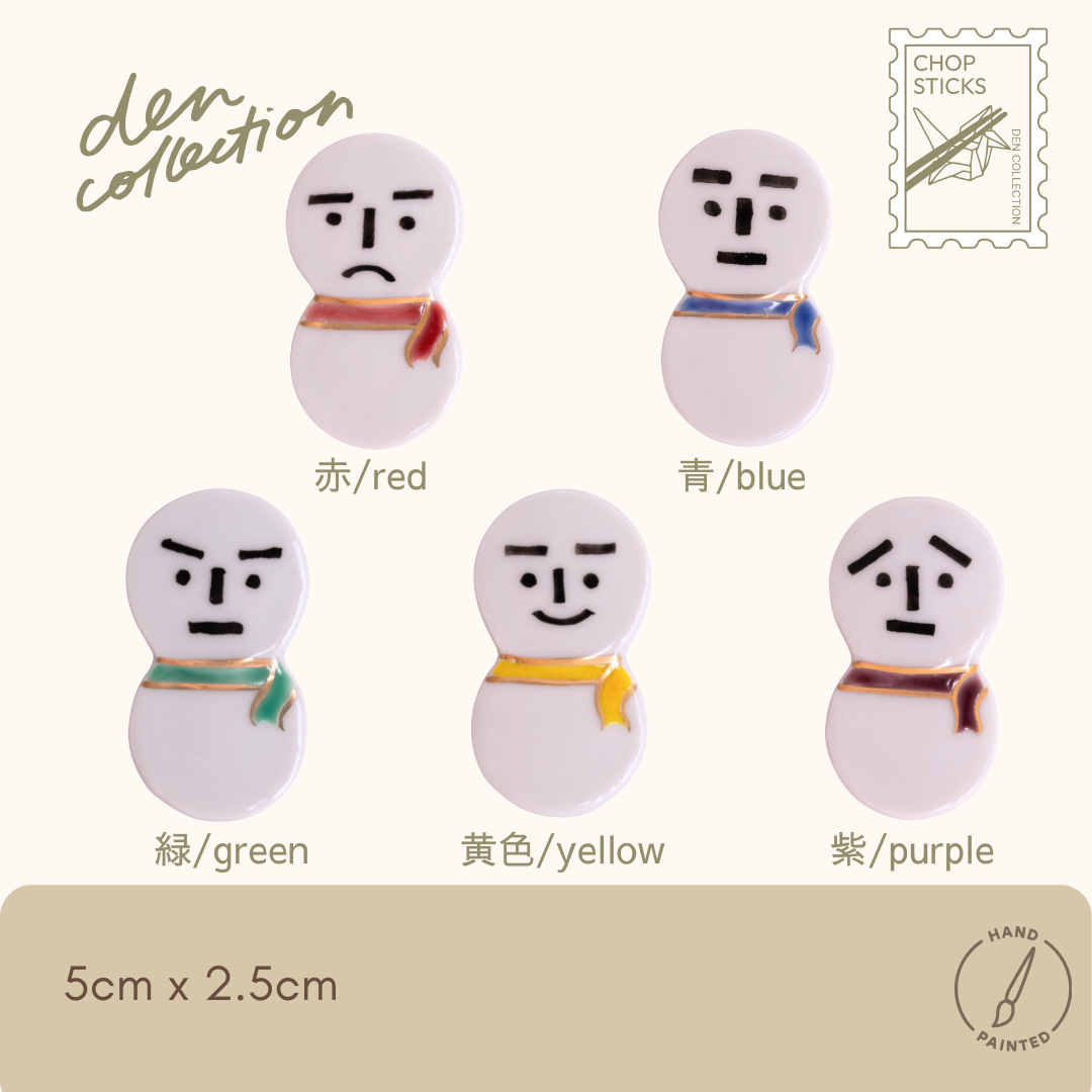 ころんと愛らしい表情が魅力の、清水焼 雪だるま 箸置き。