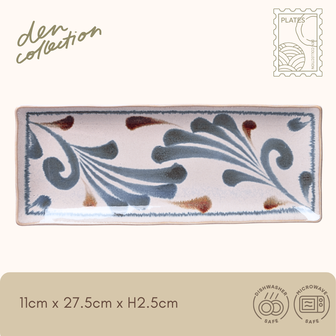 前菜や焼き物、デザートまで幅広く使える長角形は、盛り付けるだけで食卓に余白と奥行きをプラス。