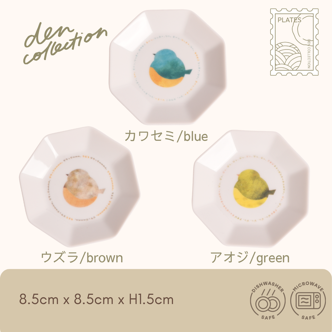 やわらかな水彩のタッチで小鳥を描いた「Suisai 八角小皿」。